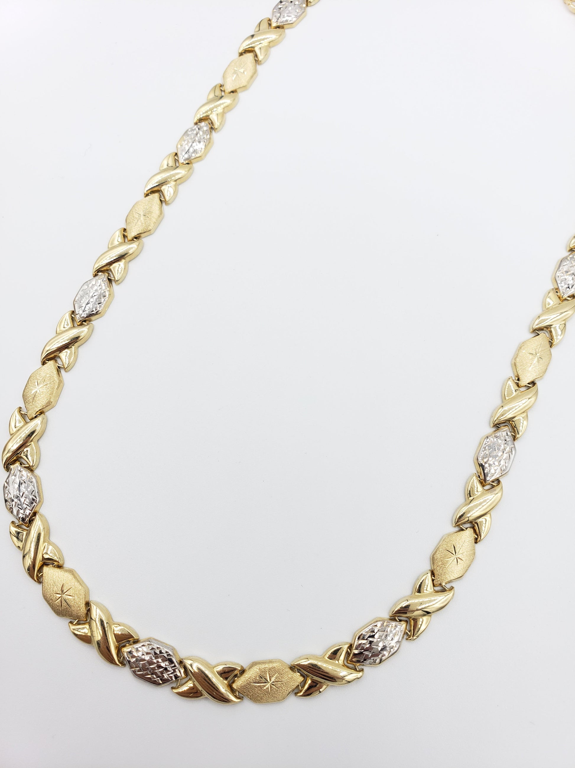 Handcrafted with precise detail, high quality, XO Chain. Available in a variety of widths and lengths- weight (grams) is provided once options are chosen. 100% 14K Gold.