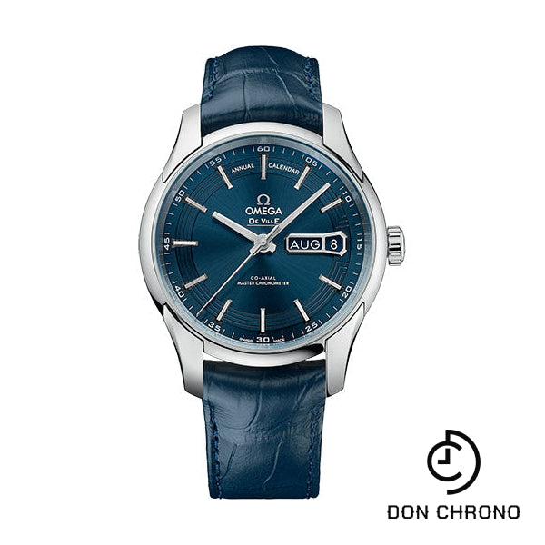 Omega De Ville Hour Vision Co-Axial Master Chronometer Annual Calendar Watch - 41 mm Steel Case - Blue Dial - Unique Leather Strap - 433.33.41.22.03.001
