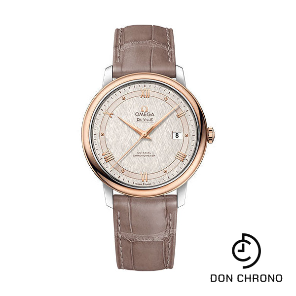 Omega De Ville Prestige Co-Axial Watch - 39.5 mm Steel And Red Gold Case - Ivory Silvery Dial - Taupe-Brown Leather Strap - 424.23.40.20.02.003