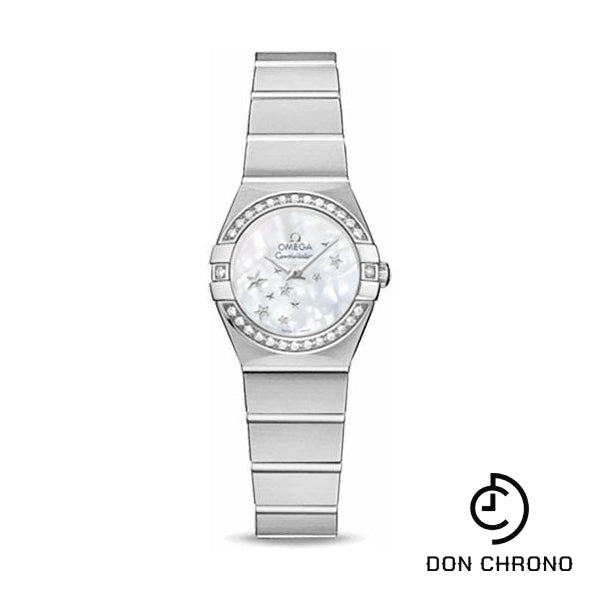 Omega Ladies Constellation Quartz Watch - 24 mm Brushed Steel Case - Diamond Bezel - Mother-Of-Pearl Dial - 123.15.24.60.05.003