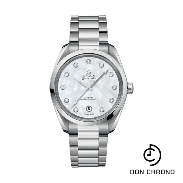 Omega Seamaster Aqua Terra 150M Co-Axial Master Chronometer Ladies Watch - 38 mm Steel Case - White Mother-Of-Pearl Diamond Dial - 220.10.38.20.55.001