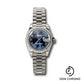 Rolex White Gold Lady-Datejust 26 Watch - Fluted Bezel - Blue Roman Dial - President Bracelet - 179179 brp